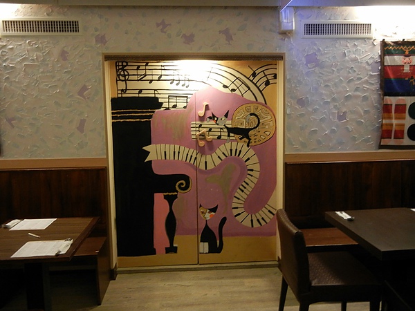 一樓左邊的牆壁,有手繪的圖案