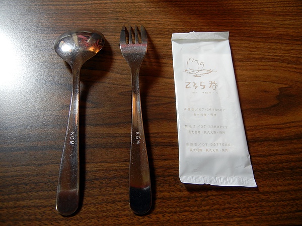 座位上已經擺好湯匙、叉子、濕紙巾