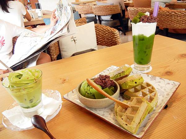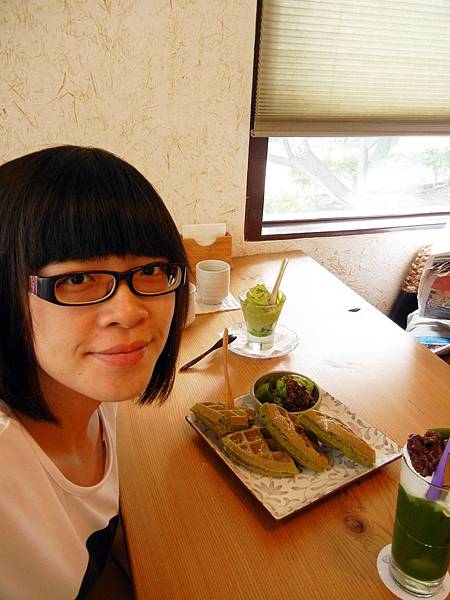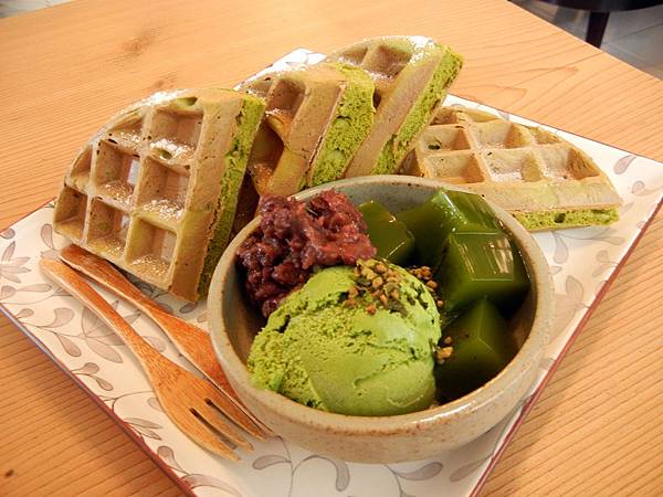 就是不怎麼甜XD,所以鬆餅吃起來有濃濃的抹茶香