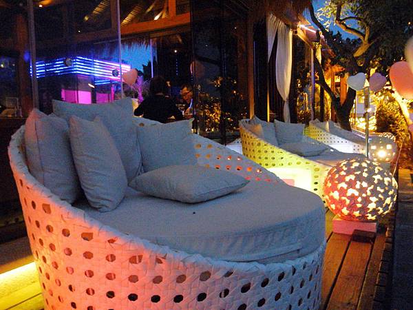 旁邊還有大沙發可以眺望海邊及對岸八里