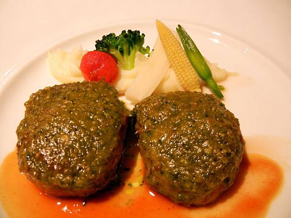 這是羊肉餐點,上頭綠綠的醬料有加入九層塔的風味