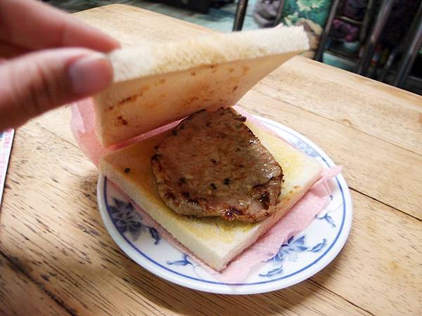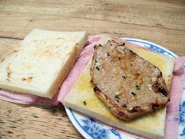 一片吐司抹乳瑪琳,直接夾上燒肉