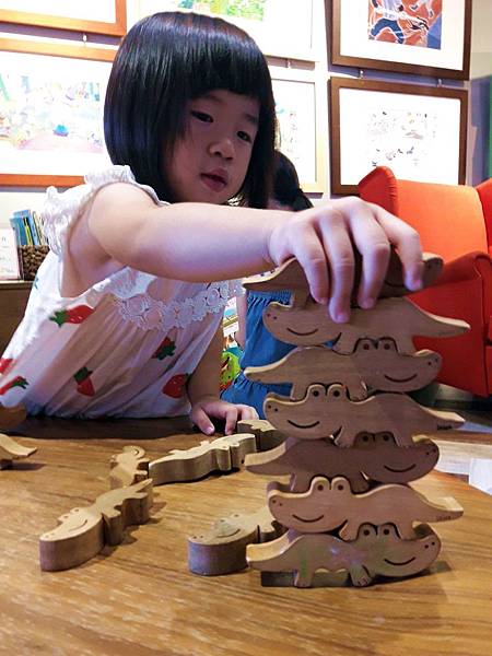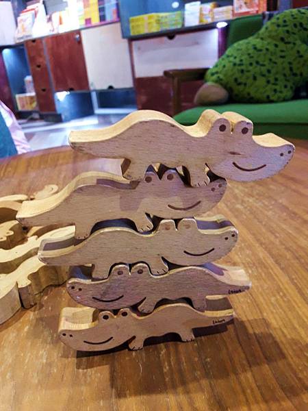 桌上有微笑小鱷的積木