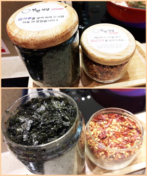 一旁還有麻油香氣的海苔絲和乾辣椒
