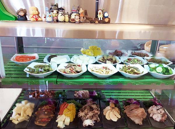 櫃台旁冷藏櫃裡有許多小菜選擇