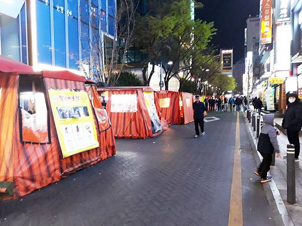 天氣太冷,店家會把布帳拉下來擋風