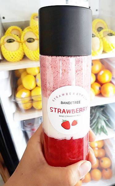 由下往上分別是草莓果醬、牛奶和新鮮草莓牛奶