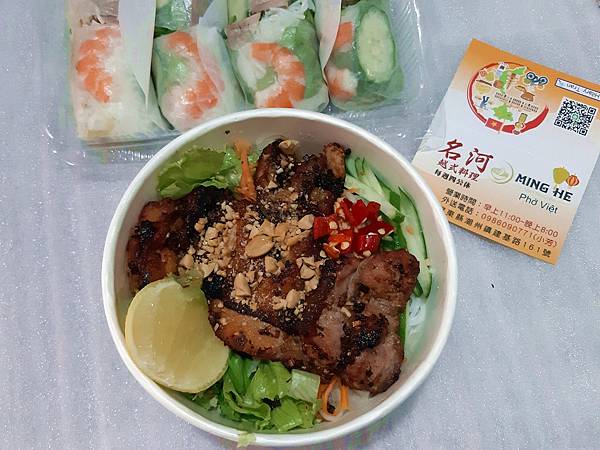 搭配蝦子和豬肉片,沾上店家給的醬料